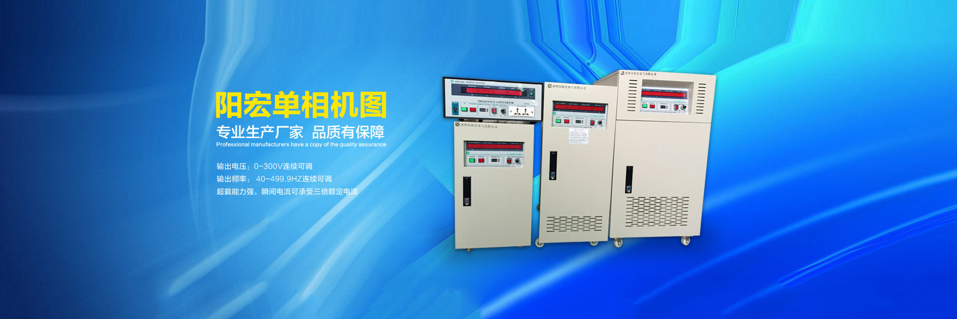 20年變頻電源制造品質(zhì)-陽宏變頻電源為您提供5KVA變頻電源,10KVA變頻電源,20KVA變頻電源,30KVA變頻電源,45KVA變頻電源,60KVA變頻電源,75KVA變頻電源,深圳單相/三相/交流變頻電源等。 模擬式變頻電源,晶體管式變頻電源,可編程式變頻電源,單相大功率變頻電源,三相大功率變頻電源是陽宏電源股份有限公司的核心產(chǎn)品。深圳市陽宏電氣有限公司隸屬臺灣陽宏電源股份有限公司,是一家變頻電源開發(fā)、研制、生產(chǎn)、銷售和服務的高新技術(shù)企業(yè)。其大陸工廠:深圳市陽宏電氣有限公司,是臺灣陽宏電源股份有限公司在中國大陸一家分公司,地址:深圳市寶安區(qū)觀瀾街道觀瀾高新科技園區(qū)。 臺灣陽宏電源股份有限公司創(chuàng)建于1995年,目前除了臺北公司以外,在中國的廣東深圳設(shè)有分公司,工廠擁有許多的先進設(shè)備。具有年產(chǎn)各種電子儀器電源設(shè)備20000臺以上,工廠有嚴格的生產(chǎn)能力,強大的開發(fā)技術(shù)的管理制度,可以接受新高技術(shù)產(chǎn)品的開發(fā)與研制。